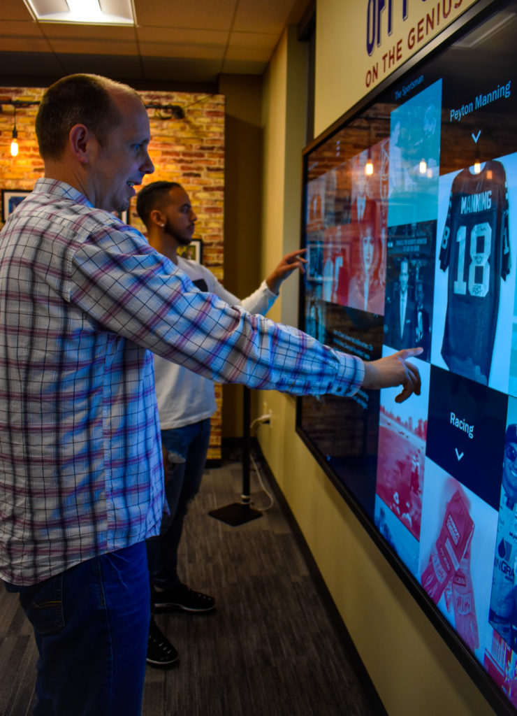 Students interact with the large touch wall experience.